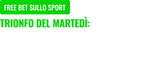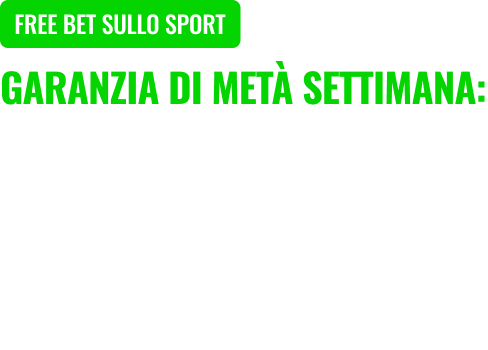 Piazza almeno 25 euro di scommesse dal lunedì alla domenica per attivare questo bonus. La scommessa minima deve avere quota 1.50. Il bonus si ottiene come Free Bet il lunedì successivo. In base ai giorni di attività (dove piazzi almeno una scommessa) da 4 a 7, il tuo bonus Free Bet va dai 5 ai 20 euro. Hai 7 giorni di tempo per scommettere il tuo importo Free Bet.